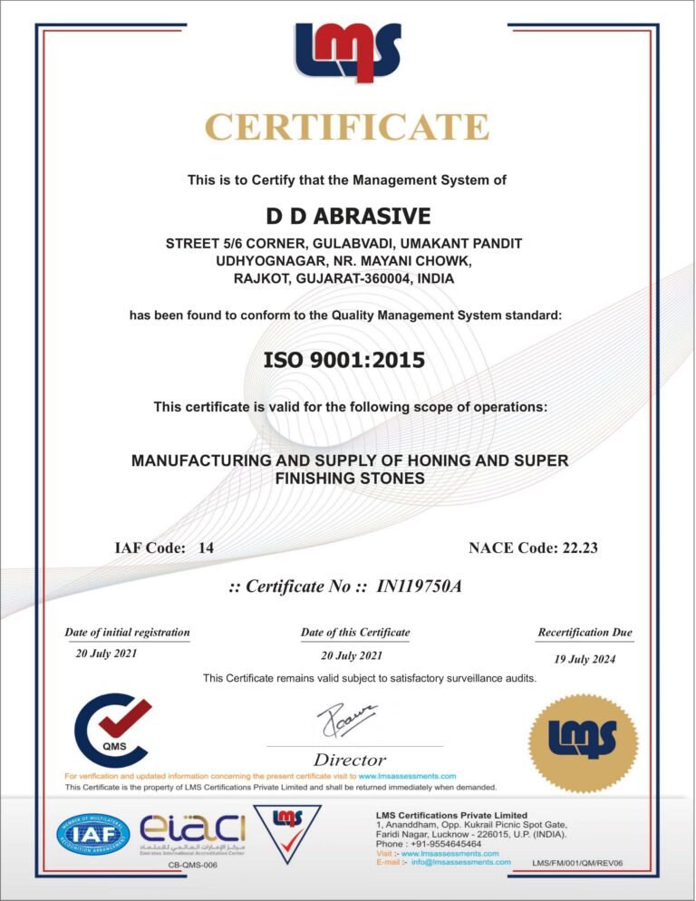 “D.D. Abrasives” Established in the year 1991, ISO 9001:2015 Certified Company, we are a noted manufacturer, processor, trader, wholesaler and supplier of Abrasive Honing and super finishing sticks. Specifically designed by our craftsmen and artisans to suit the client’s requirements, our products offer optimum quality, wide application base and long term performance.